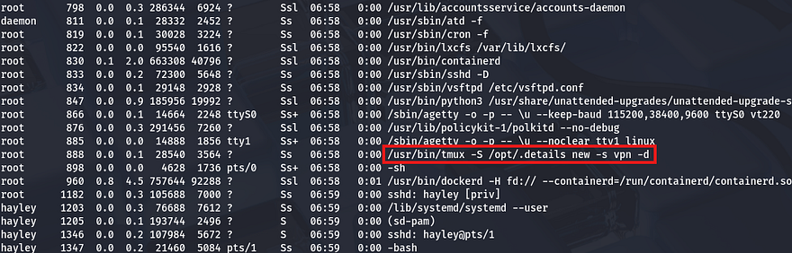 This means that we can simply use the tmux binary while specifying the socket to hijack the root shell and grab full privileges over the machine.This is a great article explaining the ins and outs of this process.