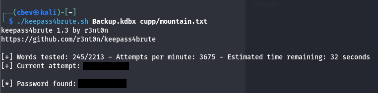 That tool contains almost the exact same fields to input our information at which gives me some hope that this will work. Hydra and other standard BF tools don’t support KeePass formats so I find this script to test with our new wordlist.