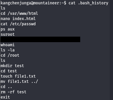 Knowing that root user abuses access to our account, we can assume that they run commands that will be logged; Luckily for us, our .bash_history file doesn’t point to /dev/null allowing us to read their password.