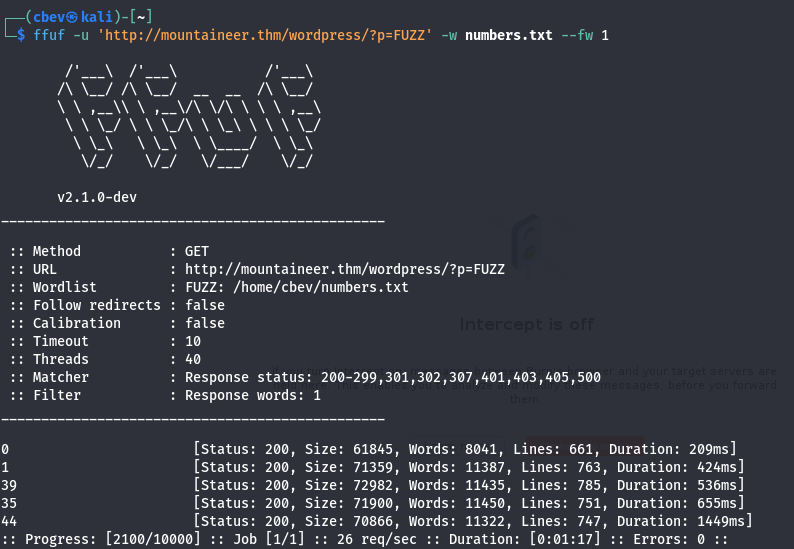 All the typical Wordpress endpoints exist, including wp-admin that redirects us to a login panel. Other than brute forcing or some kind of misconfiguration, the only vulnerability I could think of was IDOR to a sensitive page.