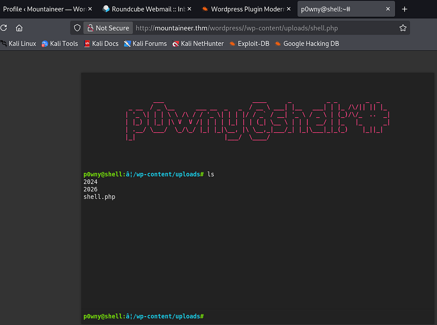 [+] Shell Uploaded to: http://mountaineer.thm:80/wordpress//wp-content/uploads/shell.php