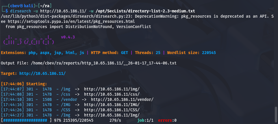 The main things I’ll focus on are HTTP, SMB, and RDP as they will be the most beneficial. I run a dirsearch in the background to save on time and start enumerating webpages.