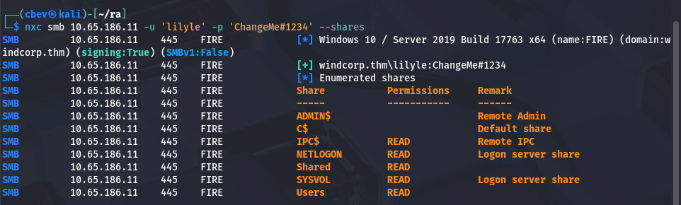 We can use this to authenticate on SMB and enumerate shares using netexec.