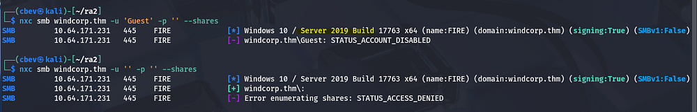 We can’t do too much without authentication so I start enumerating SMB shares and run a dig on the DNS server to grab more info.