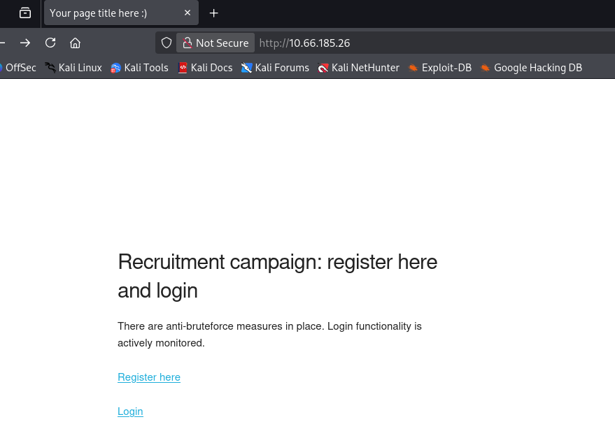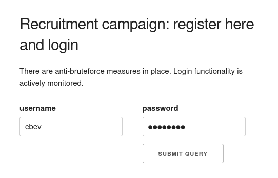 Checking out the landing page shows a barren login panel for some type of recruitment campaign.
