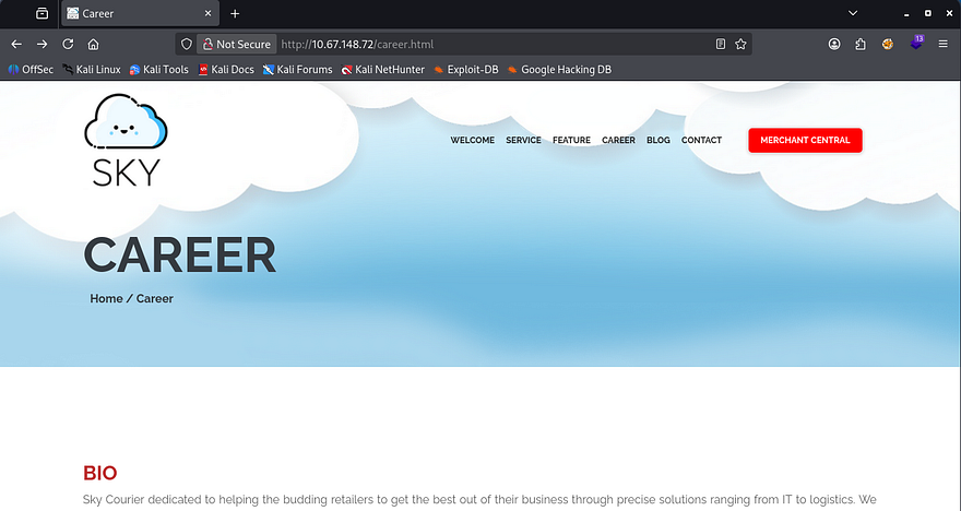 Looks like this will be web heavy, so I’ll leave a few Gobuster scans in the background to find subdirectories/subdomains. Checking out port 80 shows a static webpage for a B2B delivery service.