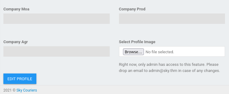 After changing that to admin@sky.thm, we can sign in using the newly updated password to get administrative privileges over the site. There is no more functionality except for that profile picture upload, so let’s exploit that to upload a PHP reverse shell.