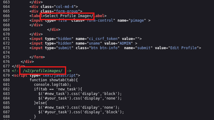 It’s a bit funky but uploading a file does work. Checking the page’s source code discloses that they get stored at /v2/profileimages/<FILE_NAME>.