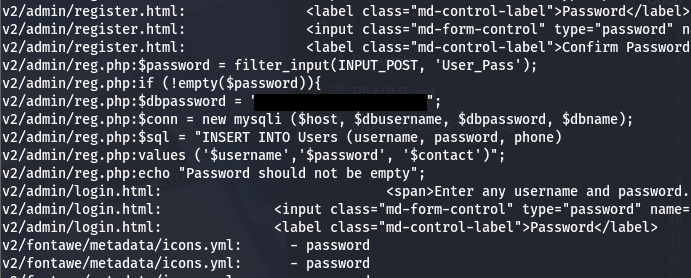 At this point, we can grab the user flag inside webdeveloper’s home dir and start looking at ways to escalate privileges to them or root user. Going about the usual methods of finding SUID bits set, sudo privileges, and exposed backup files yields nothing. I use grep -iR password in /var/www/html/ to find any instances of a password being stored on the web server’s files.