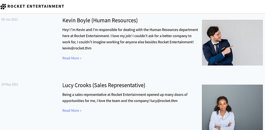 A lot of the site is missing functionality for things like purchasing packages and sending contact forms, but there is a section for their employees which gives us a list of names and their corresponding emails. I’ll add those to a wordlist in case we need them for a brute-force or other attacks later on.