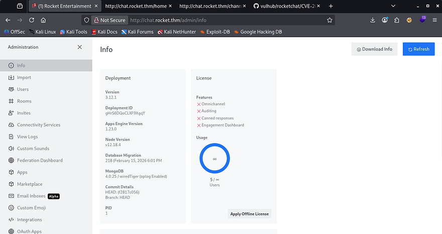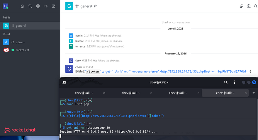 Now that we have Chisel ready to paste, head onto the rocketchat shell and do the following: