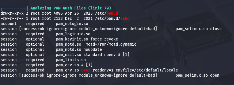 This led me to enumerating PAM configuration files in hopes to exploit authentication at sign on.
