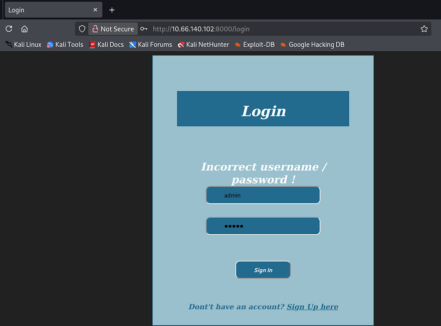 Checking the landing page shows a typical login panel for the server. I try a few common default credentials for administrator and get a standard error back. I also start a few gobuster scans in the background to find subdomains/subdirectories to save on time.