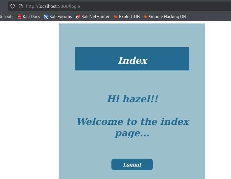Hazel’s credentials work to sign in here but there isn’t much of anything to exploit as my directory scans return the same pages as the first website. The only real thing that is dynamically loaded is the username which may just be prone something like server-side template injection. Since we have the code for it, I quickly review it looking for any potential vulnerabilities.