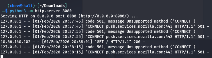 I copy/paste the index.html page to a file hosted on my machine and setup a Python server on port 8080. Now whenever that script executes, it will reach out to our server and try to authenticate on port 8080, where it thinks the dev_site is at.