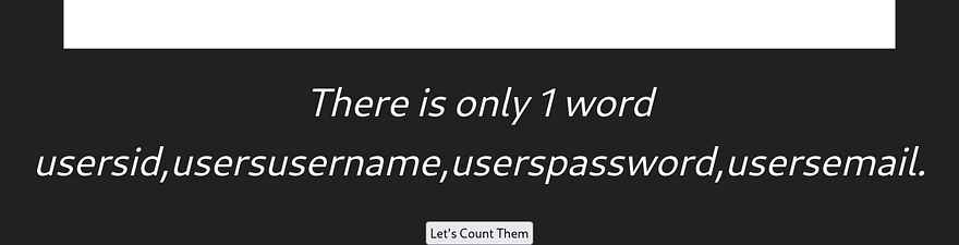 We can’t exploit that as we haven’t found the signing secret but it’s nice to know how the site tracks our login. It seems like the function just parses for words separated by a space, so I move on to exploiting the register page. I notice that our username is reflected whenever a query is made to count the words.