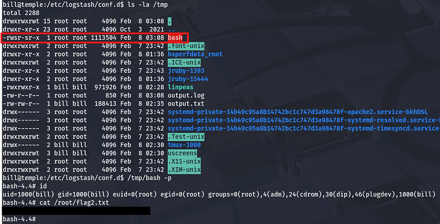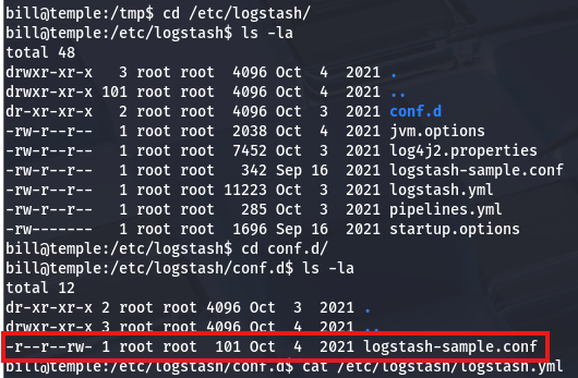 If you didn’t know, logstash is an open-source, server-side data processing pipeline that ingests, transforms, and ships data from their sources to a specified destination. In other words, it acts as a separate centralized logging engine to handles heaps of data from different applications. I’m banking on the fact that those logs will include secrets like credentials that may have been reused for root user on the box.