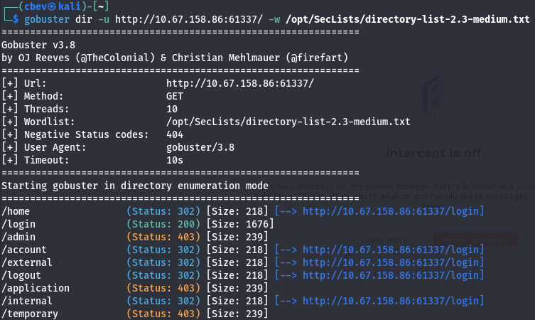 Looking through the directory bust results shows a lot of places that we can’t access until we get a valid login. Most of them seem like APIs for site functionality, but /application and /temporary threw a 403 Forbidden Error which made me think these are directories we’re just not able to view.