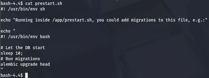 There is nothing too crazy about the hypervisor script so I head over to /app and start checking files in there. Inside prestart.sh is a simple script that will perform migrations if needed for the hypervisor.