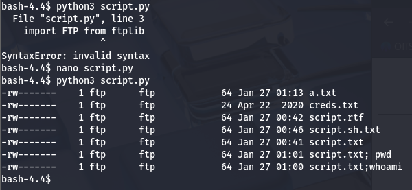 This is interesting as we can not read FTP directly, but this upload API allows us to communicate with it. I’m guessing an administrator will be checking these scripts which will auto-execute them for our sake.