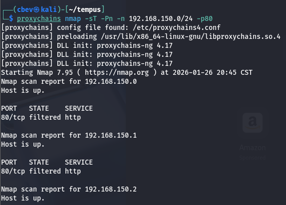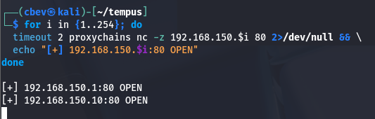 timeout 2 proxychains nc -z 192.168.150.$i 80 2>/dev/null && \