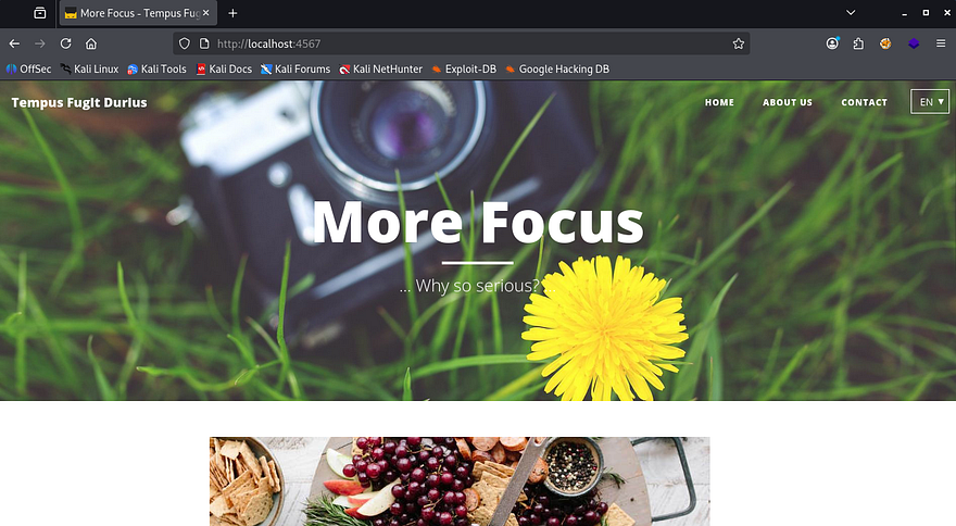 This command forwards the other host’s service on port 80 to our local machine and listens on port 8888. I did this in hopes for an admin login page or something similar however, it only brought the same application as in the beginning.
