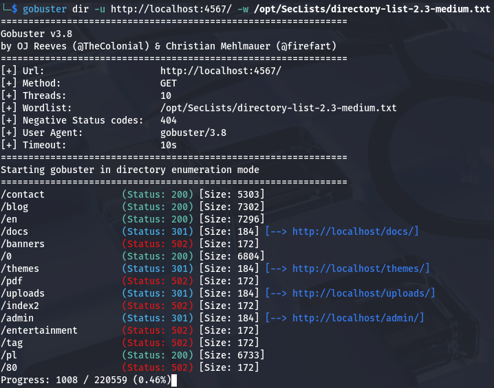 Now we can find some directories using gobuster. Make sure to set the timing to lowest as our proxies can get overwhelmed and the queries will be timed out if not.