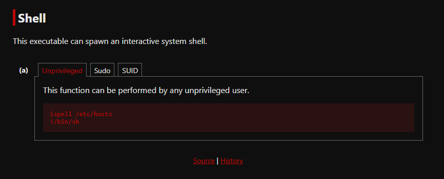 This binary is typically just a spell checker, but our friends over at GTFOBins have a great method to spawn a shell from it and read files using those higher privileges.