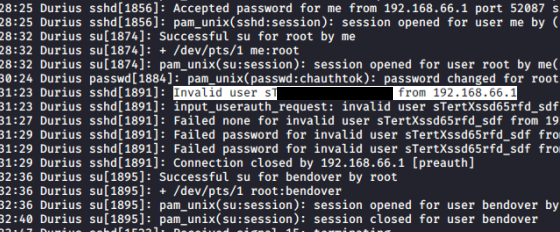 Doing so won’t let us read root.txt directly, so I fallback to the auth.log file and find a line with potential creds for root user. It seems like the system prompted a sign in on SSH and the user accidentally supplied their password instead of a username.