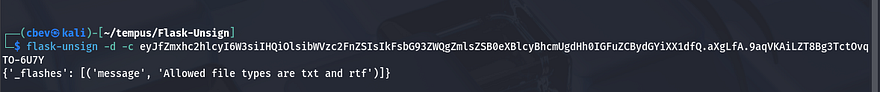 I was curious about the cookie being set once uploaded so I unsigned it using flask-unsign and found out it was the reason for this popup.