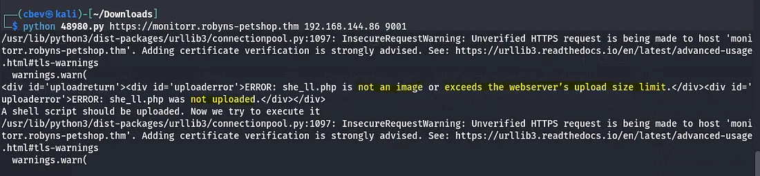 Now I try to execute the script again only to find that it isn’t an image or may exceed the server’s upload size limit.