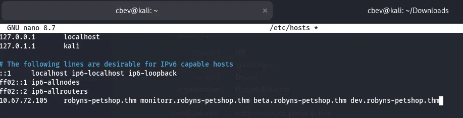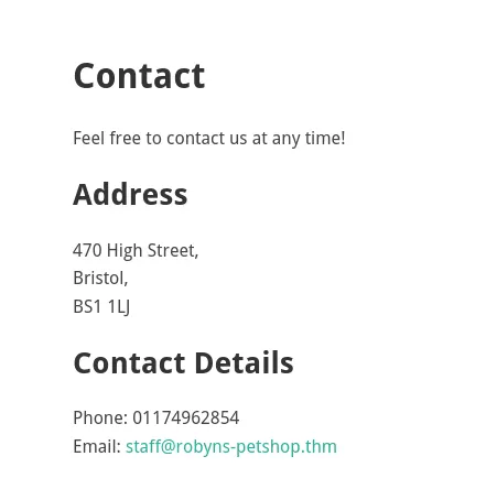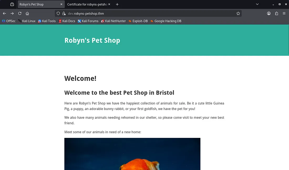 dev.robyns-petshop.thm was a similar page to the landing page for animal rehoming.