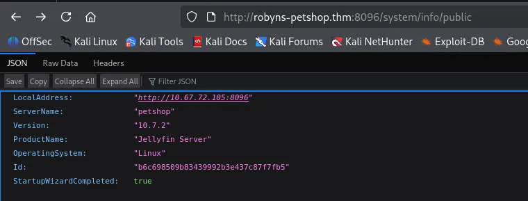 The health endpoint just stated a single word describing the system health. After about 20 minutes of googling, I struck gold, there was a page at /system/info/public which displayed system information including version and OS.