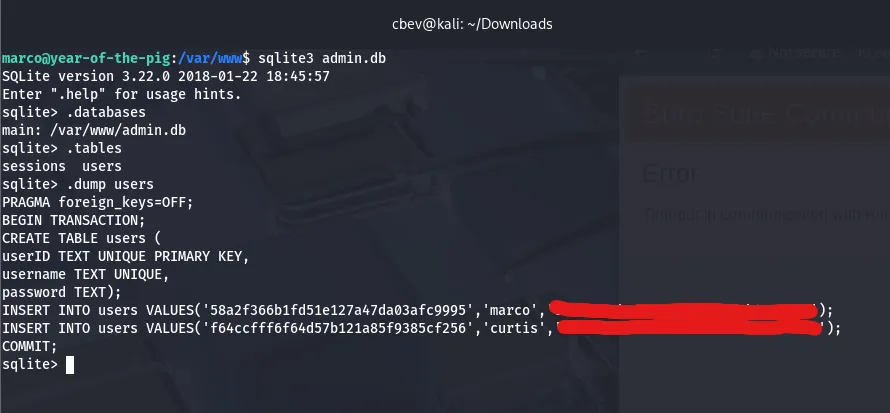 This system has sqlite3 installed so I use that to enumerate the database. I end up finding a hash for curtis in here. Unhashing it gives us the plaintext password and we can switch users to move on to root access.