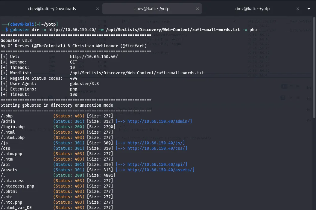 We do know that the site is running on PHP so let’s keep the enumeration going with another directory bust using .php extensions (not much else for us here but it’s good practice).