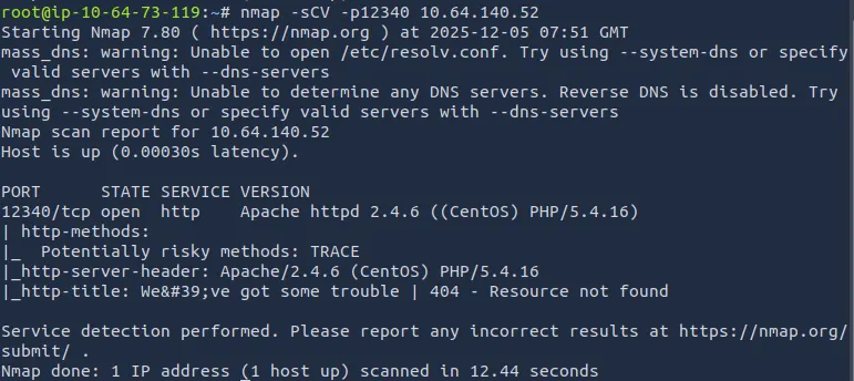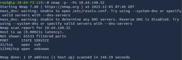 As always, I run an Nmap scan on the given IP. It returns that only SSH and one other service are running on the host. Let’s dig a little deeper and find out what’s on port 12340.