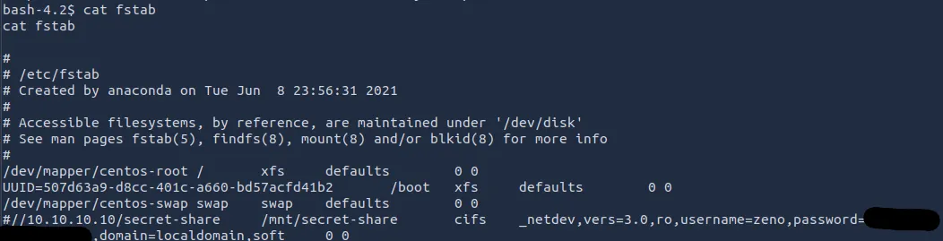 LinPEAS comes to the rescue after almost 20 minutes of nothingness, there’s a file in /etc/fstab with credentials for someone named ‘zeno’. LinPEAS also discovered a writeable file at /etc/systemd/system/zeno-monitoring.service